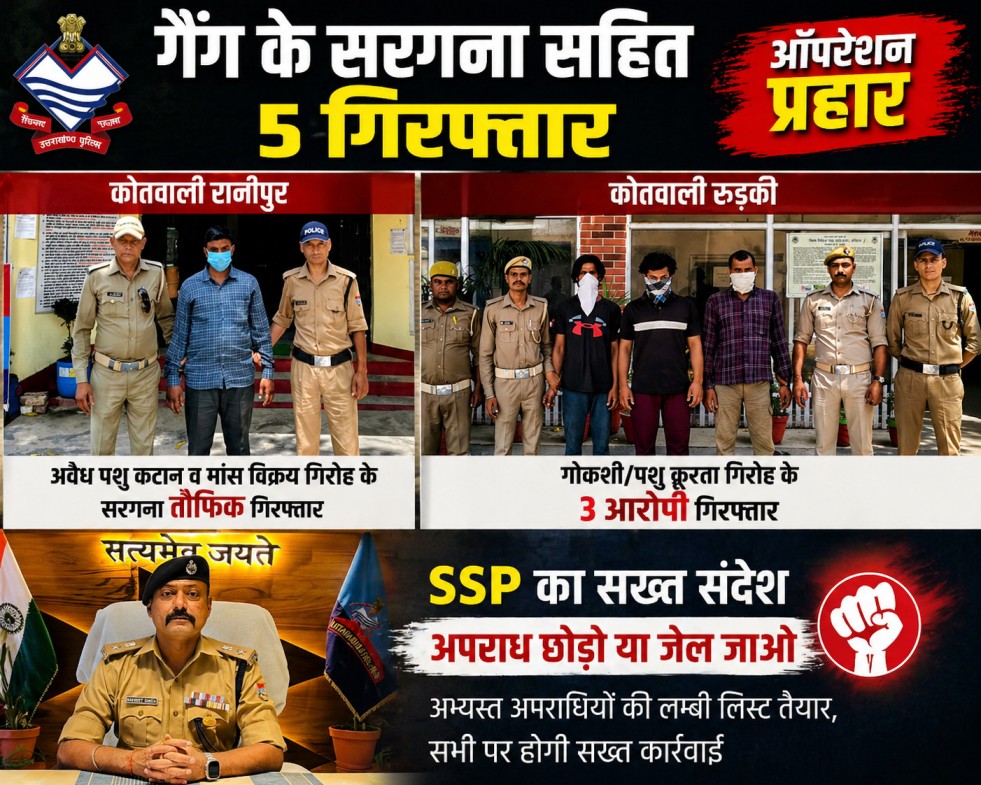 गोकशी में शामिल अपराधियों पर हरिद्वार पुलिस का सख्त एक्शन, ऑपरेशन प्रहार में 5 गैंगस्टर गिरफ्तार