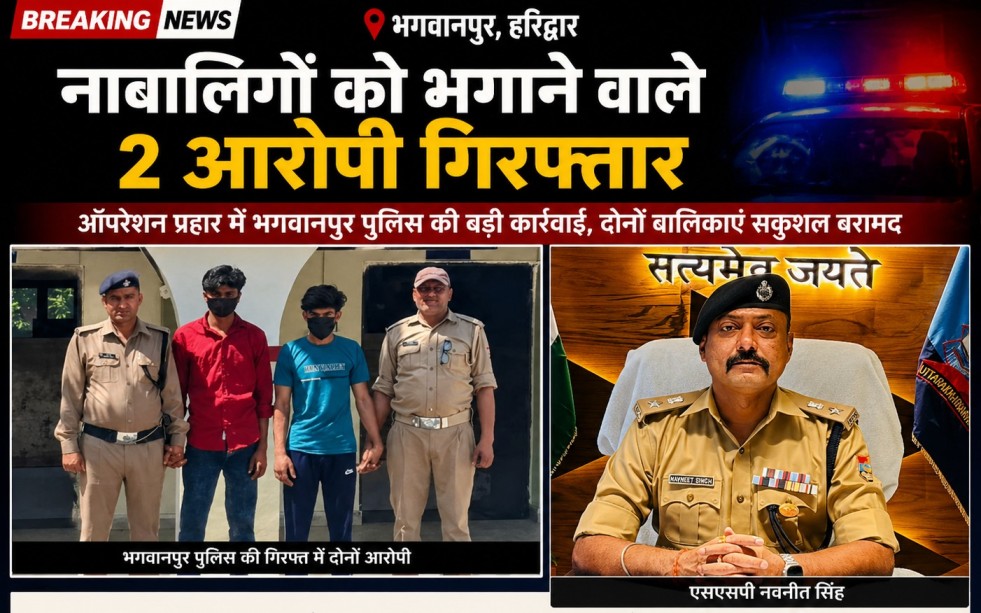 रूडकी। कोतवाली भगवानपुर पुलिस ने ऑपरेशन प्रहार के तहत बड़ी सफलता हासिल करते हुए नाबालिग बालिकाओं को बहला-फुसलाकर भगाने वाले दो आरोपियों को गिरफ्तार कर लिया। पुलिस ने त्वरित कार्रवाई करते हुए दोनों अपहृत बालिकाओं को सकुशल बरामद कर परिजनों के सुपुर्द कर दिया है। वहीं दोनों आरोपियों को कोर्ट में पेश कर जेल भेज दिया गया है।